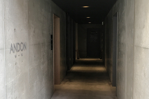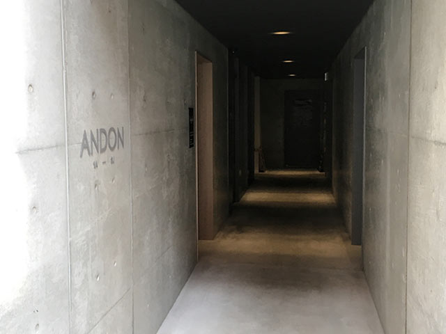 コンビニの方からANDONを見ると少し狭い通路があります。そこがオフィス側入口です。